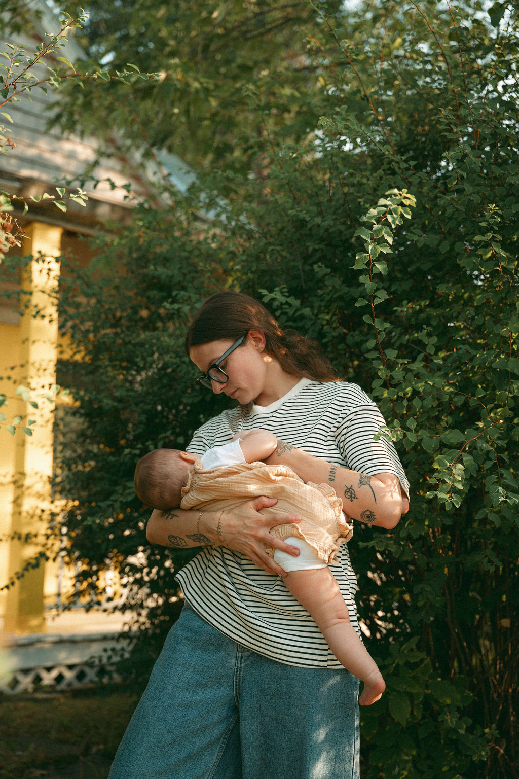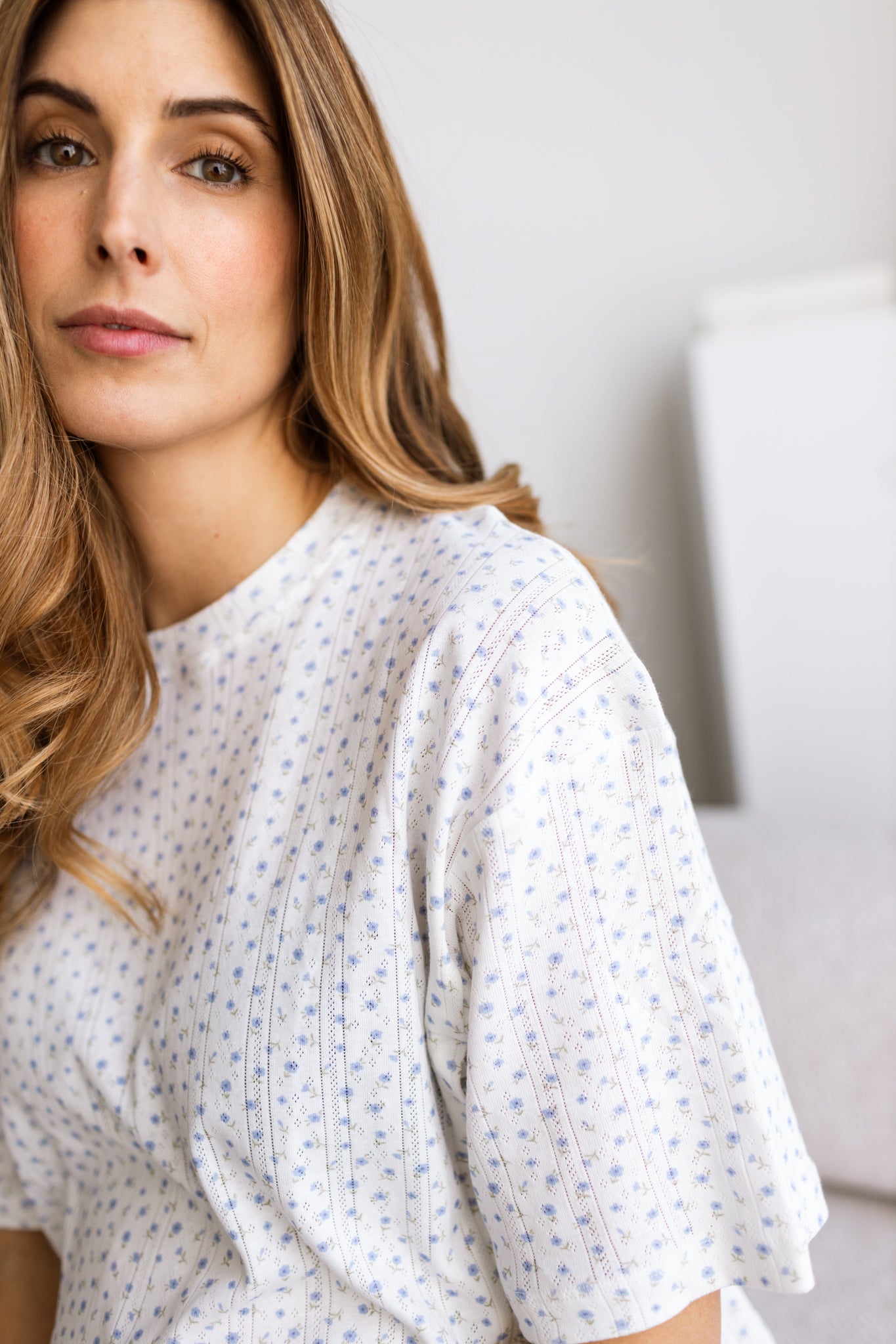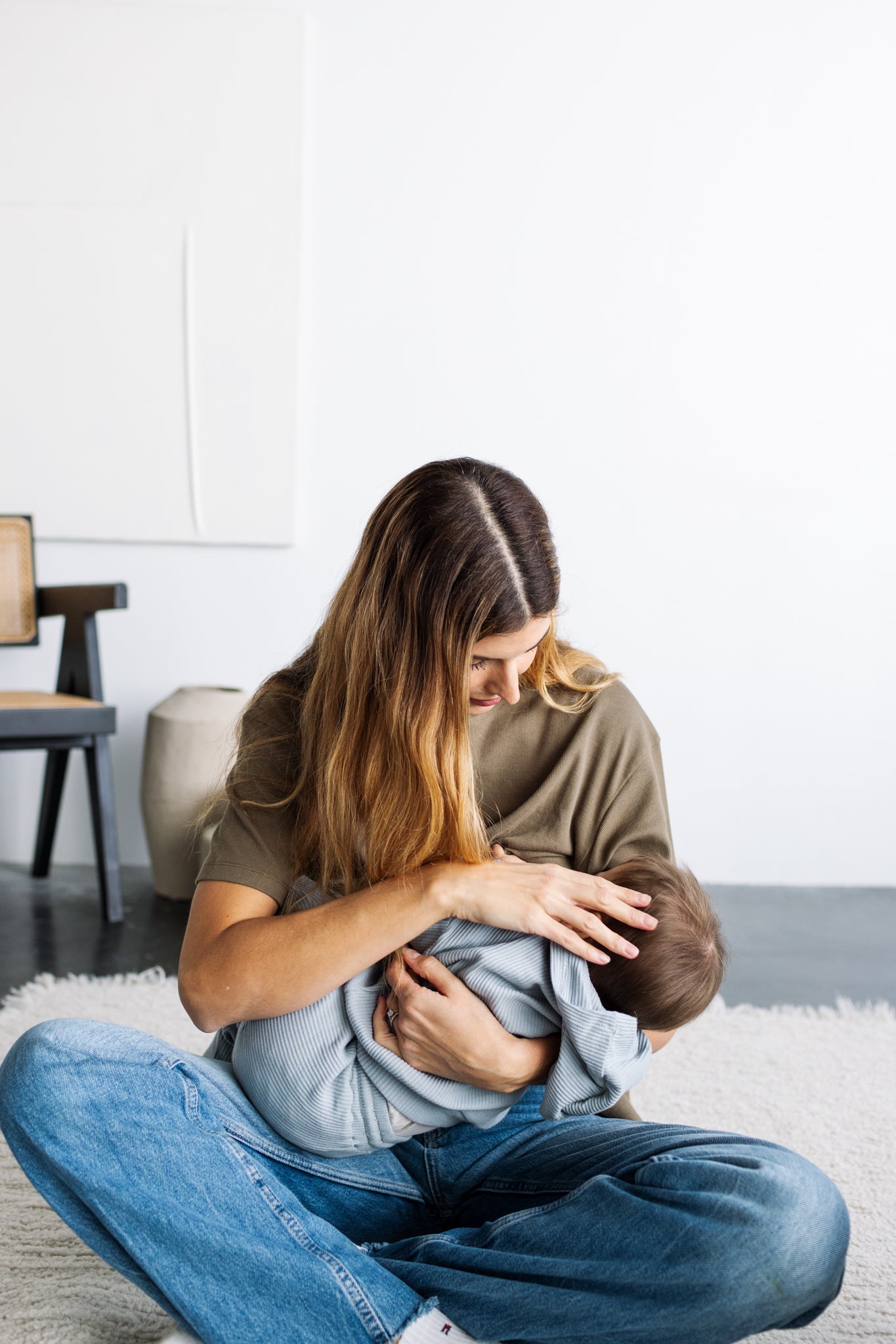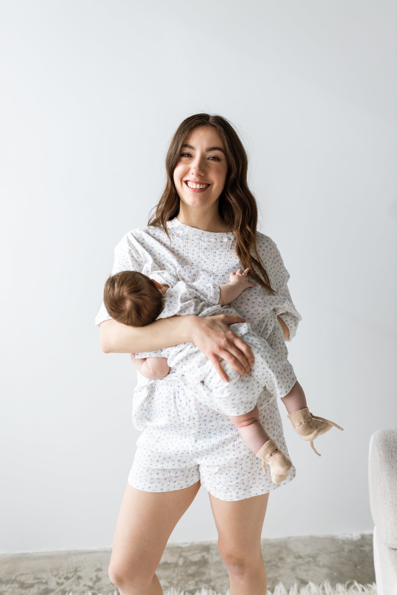 Crewneck d'allaitement rayé vert avec bordures bleues
