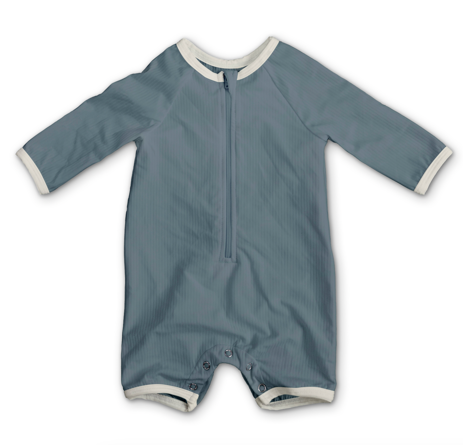 Un rashguard une pièce avec fermeture éclaire au devant.