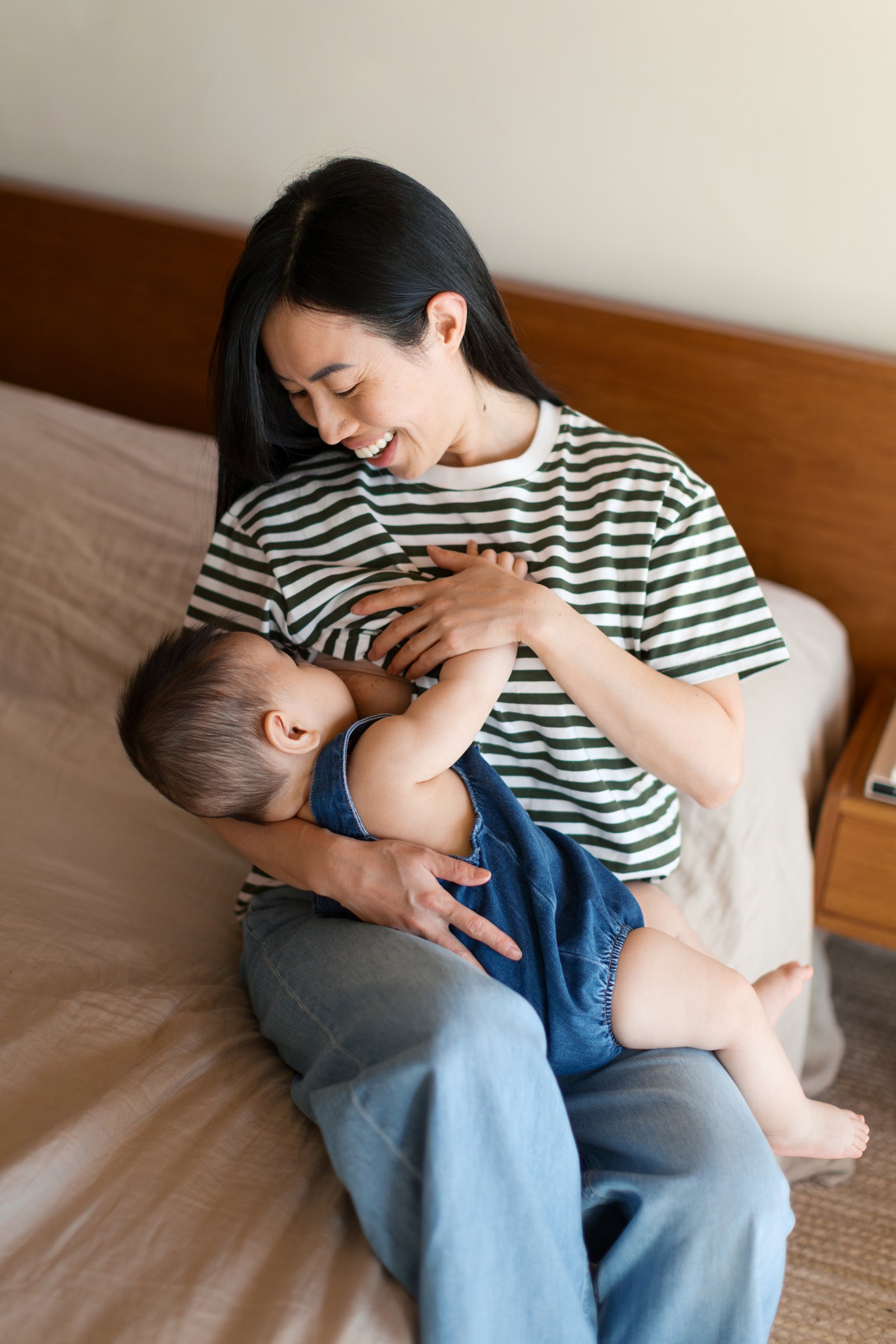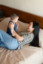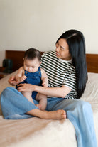 Grâce à ses ouvertures discrètes pour l’allaitement, tu peux nourrir bébé facilement, où que tu sois, tout en gardant un look intemporel et décontracté. Les rayures ajoutent juste ce qu’il faut de style pour te sentir bien habillée, même dans les journées (ou nuits) improvisées.
